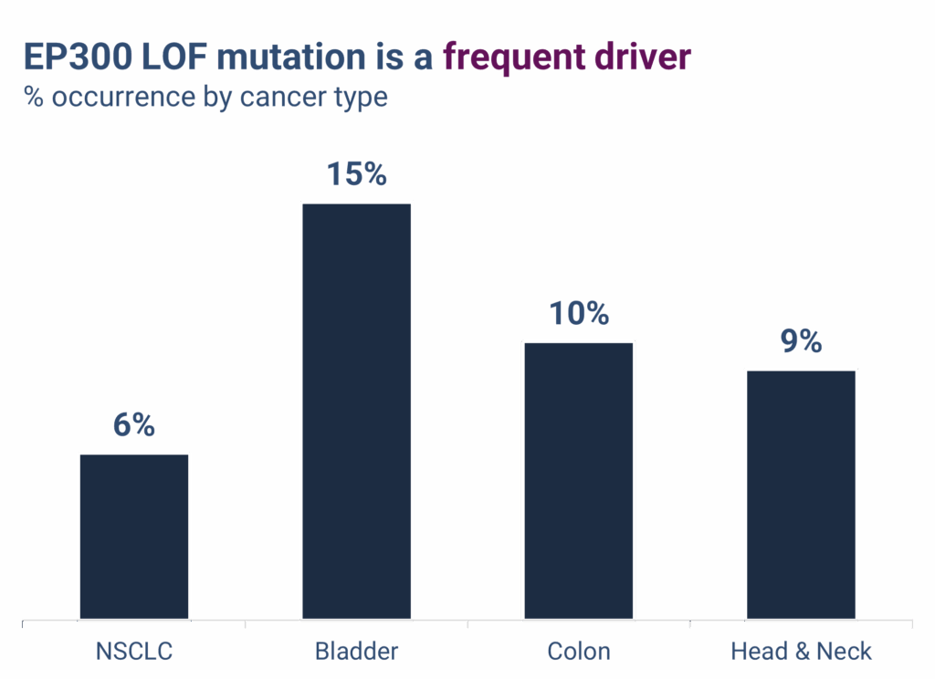 EP300 LOF mutations are well-characterized cancer drivers and occur at meaningful frequencies across multiple solid tumors, including:
